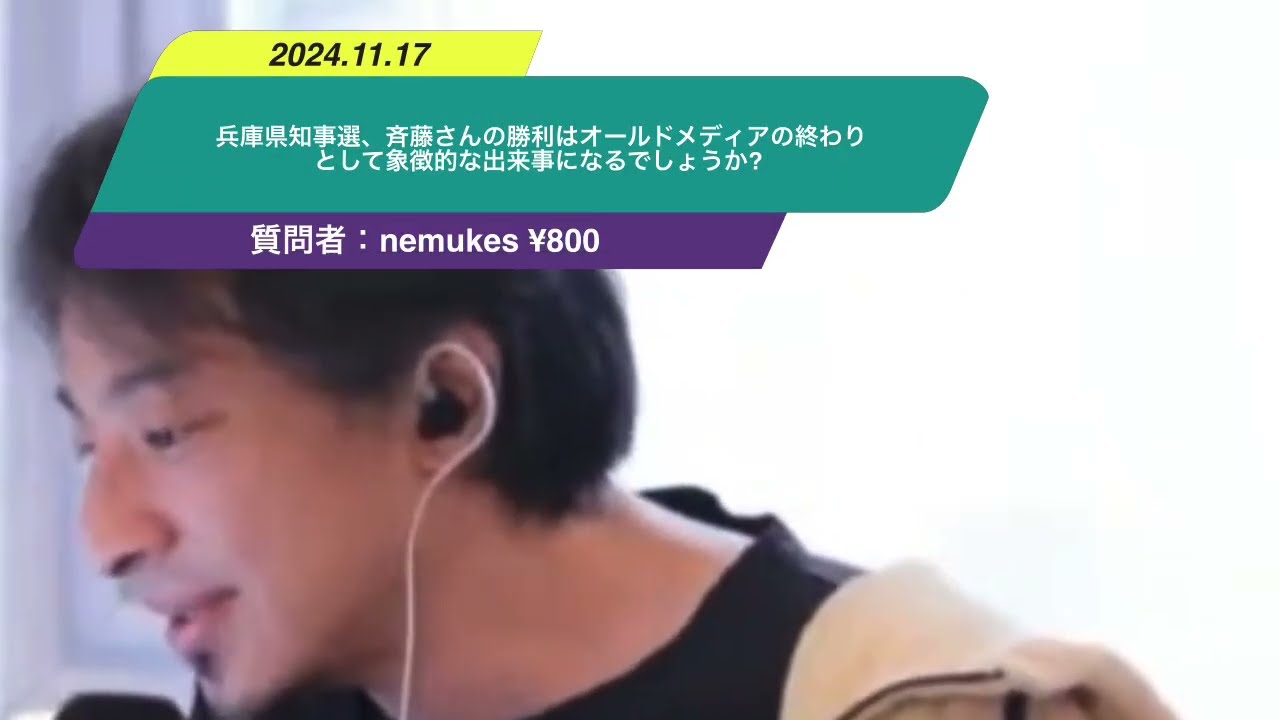 兵庫県知事選、斉藤さんの勝利はオールドメディアの終わりとして象徴的な出来事になるでしょうか? 国民がアップデートされることは良いことだと思いますが、反面陰謀論が増えるのではないかとの懸念もあります。メディアも印象操作が多いので、受け取った情報をどのように精査したらいいのでしょうか?