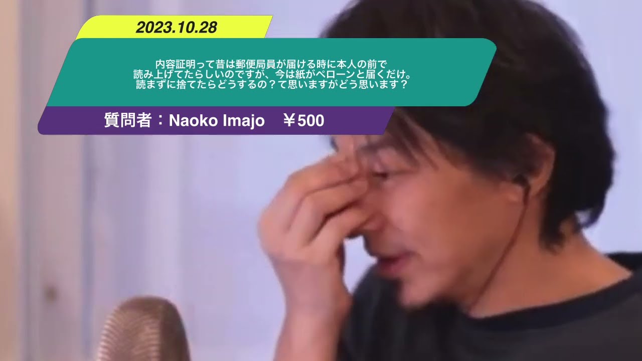 Kind: captionsLanguage: jaえ内容証明って昔は郵便局員が届ける時に本人の前で読みげたらしいのですが今は紙をペロン届くだけ呼ばずにせたらどうすると思いますがどう思いますか控は指局なるけどえっと別にただあのその本人が読んだかというよりはあの受け取ったかどうかなんですよねなので内容証明郵便っていうのをあくまで受け取ったというサインとあとその中の入ってある内容というのはその郵便局にもあるので内容が分かりますよってわけで読んだ証明自体にはならないんですけどただまそれまで受け取ったんだったらもう読んだと見なしましょうよっっていう仕組みなんですよなのであの工事争奪っていう仕組みあるんですけどその相手がどこにいるか分からないという人に対してま裁判とかする方法としてあの裁判所の壁にこいつを訴えますでそのなんかこいつ反論があるんだったら何月何日までに書類を出してくださいっていうのを裁判所の壁に書いとくっていう制度があるんですよで一般的にその裁判所の壁を見に行くやつなんてほとんどいないじゃないですかいちいちそのまなんか毎週毎最判所の株見に行ってああなんか俺訴えてるかな訴えられてるかなみたいに見ることはないんですよただその訴えられた人というのがそのいきなり訴えられたらかわいそうだからちゃんと内容証明だったり書きとめだったりとかでその本人が分かるようにしてでそこで反応しないんだったら本人のま自己責任だよねでもそれで届かないんだったらもう裁判所の横に貼るぐらいしかないよねっていうので裁判所の横に貼っとくことで相手に伝えたということにするっていうそういう手の文化なんですよなのであの実質的にその人が読んだかどうかというよりはそういう一応なんか伝えるという努力を最大限やりましたかっていうとこですはい