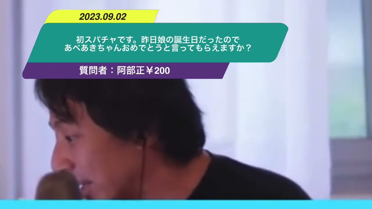 初スパチャです。昨日娘の誕生日だったのであべ あきちゃんおめでとうと言ってもらえますか?