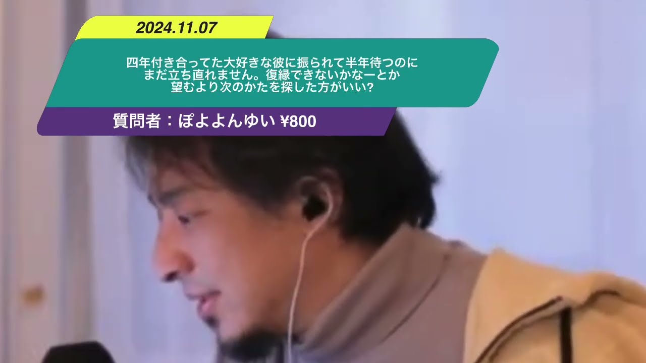 Kind: captionsLanguage: ja[音楽]え気持ち悪いババと分かってての質問です4年付き合ってた大好きな彼に振られて半年待つのにまだ立ちません険できないかなと望み次の方を探してがいいですねはいあのあの基本的にはもうあの次にとっととと言った方がいいですあの福できたら復縁出てきたでよかったねっていうあのあボーナスみたいなもで基本的にあのとっとと次に行った方がいいですよはい