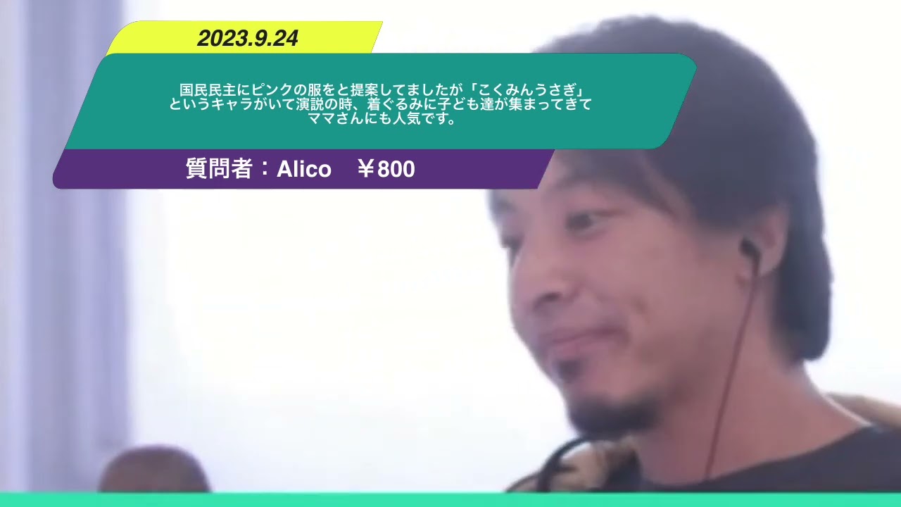 国民民主にピンクの服をと提案してましたが「こくみんうさぎ」というキャラがいて演説の時、着ぐるみに子ども達が集まってきてママさんにも人気です。ピンク服より可愛いし知られればイメージアップになると思うのですがアピール下手なのか知られてなくて残念です。議員さん達もキャラのピンバッジ付けてて可愛いんですが…