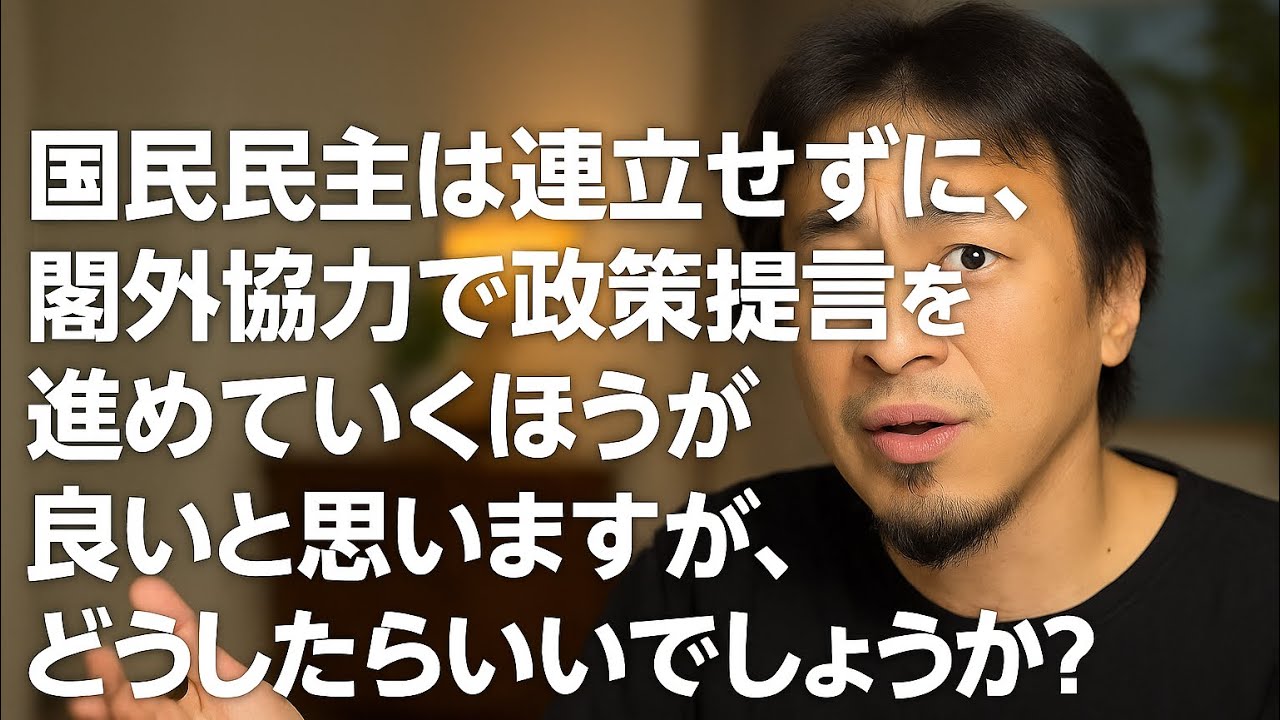 国民民主は連立せずに、閣外協力で政策提言を進めていくほうが良いと思いますが、どうでしょうか?