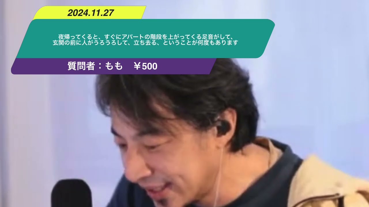 Kind: captionsLanguage: ja[音楽]えっと先に帰ってくるとすぐにアパートの階段上がってくる仕事がして玄関の前に人がうして足さるとかんでもありますさっきは花にこえた勉強をされることに超えたから怖くてです何かしたいんですか別に何されるわけでもないけど次の一体はカメラではいカメラで録画してくださいあの何かあったら結構まずいので早め録画して警察に行った方がいいんじゃないかなと思います