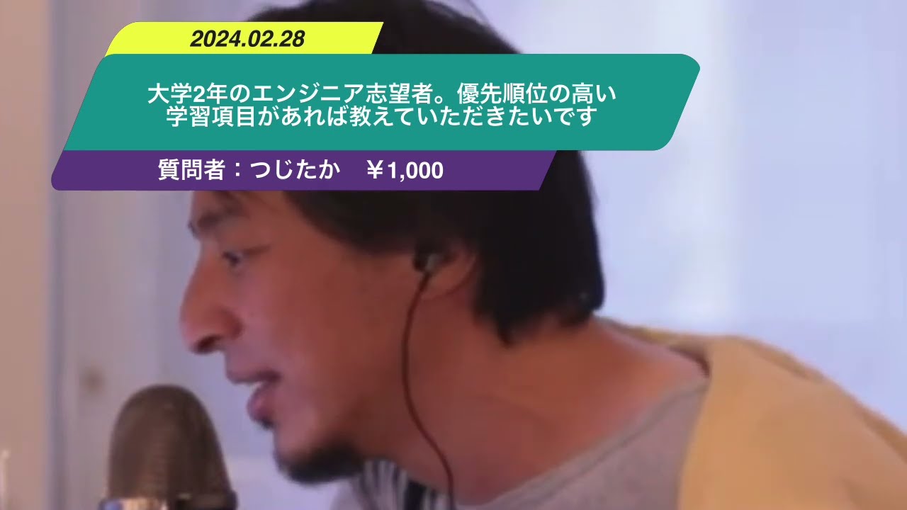 【ひろゆき】大学2年のエンジニア志望者。優先順位の高い学習項目があれば教えていただきたいです。ー ひろゆき切り抜き 20240228