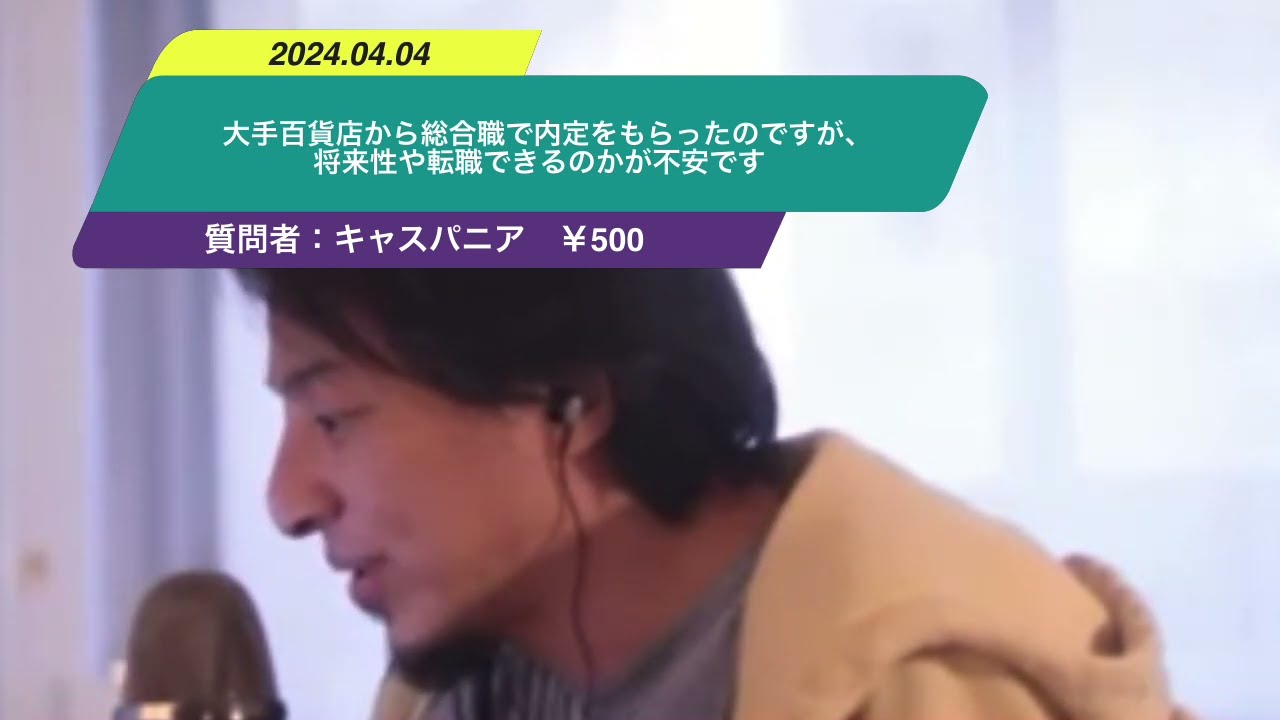大手百貨店から総合職で内定をもらったのですが、将来性や転職できるのかが不安です。他にもあまり有名ではない機械メーカーから内定をもらっているのですが、どちらに行くべきでしょうか。ひろゆきさんのご意見をお伺いしたいです。