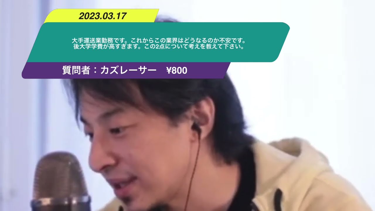 【ひろゆき】大手運送業勤務です。これからこの業界はどうなるのか不安です。後大学学費が高すぎます。この2点について考えを教えて下さい。ー ひろゆき切り抜き 20230317