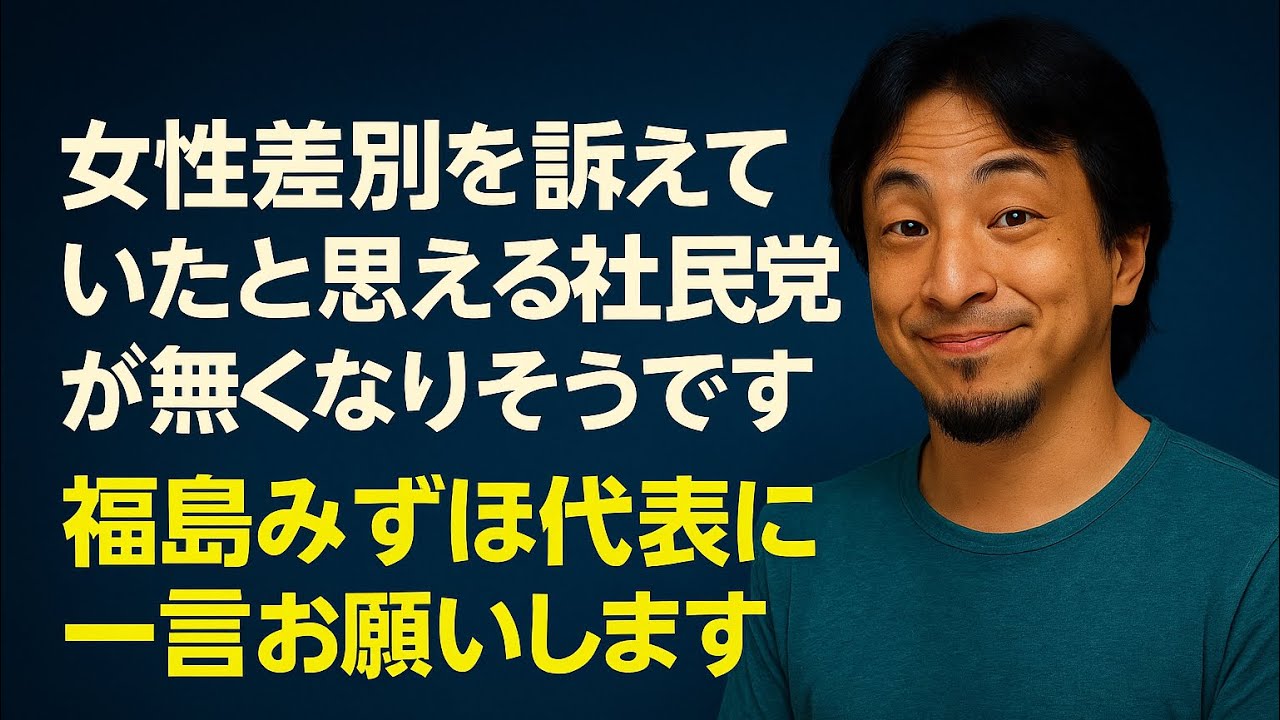 女性差別を訴えていたと思える社民党が無くなりそうです 福島みずほ代表に一言お願いします