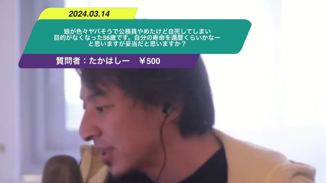 Kind: captionsLanguage: jaえ娘が色々やぼそうで公務員辞めたけど自死してしまい目的がなくなった56歳ですえ父祖父も名で平気音超えてしまいました自分の寿命管理くらいかなと思いますが妥当だと思いますかまでもあの割と遺伝で民明だとあの本人も短めになることがあると思うのでなのでま完iniぐらいに死ぬなと思ってそれまでの間に同人生やりたいことができるかっていうので探してみるといいんじゃないですかね