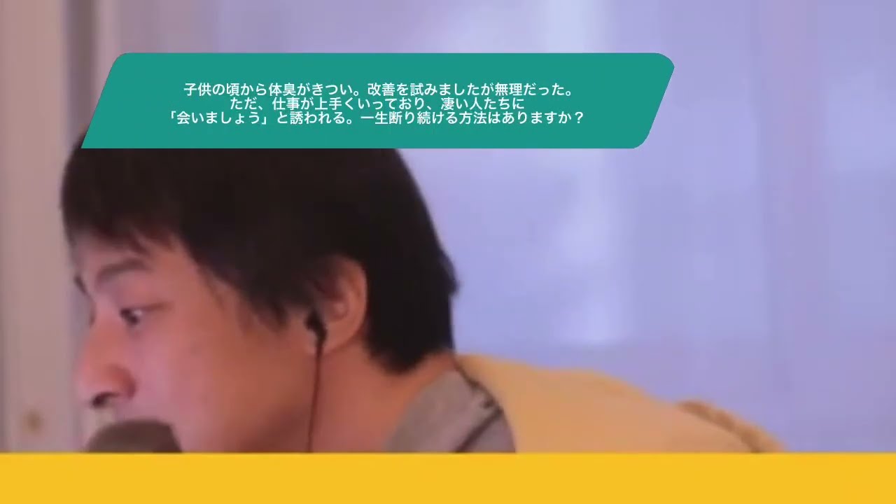 【ひろゆき】子供の頃から体臭がきつい。改善を試みましたが無理だった。ただ、仕事が上手くいっており、凄い人たちに「会いましょう」と誘われる。一生断り続ける方法はありますか?ー20240111