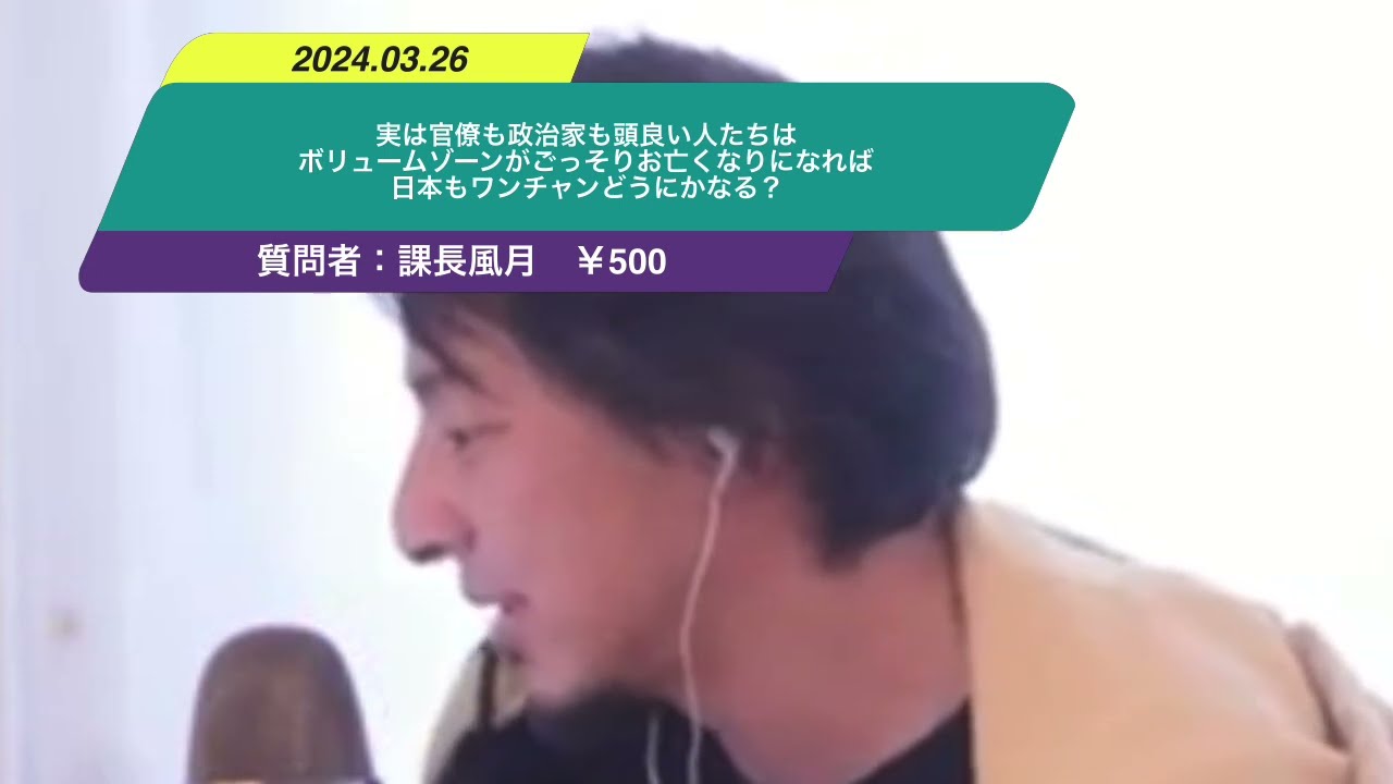 【ひろゆき】実は官僚も政治家も頭良い人たちはボリュームゾーンがごっそりお亡くなりになれば日本もワンチャンどうにかなる?ー ひろゆき切り抜き 20240326