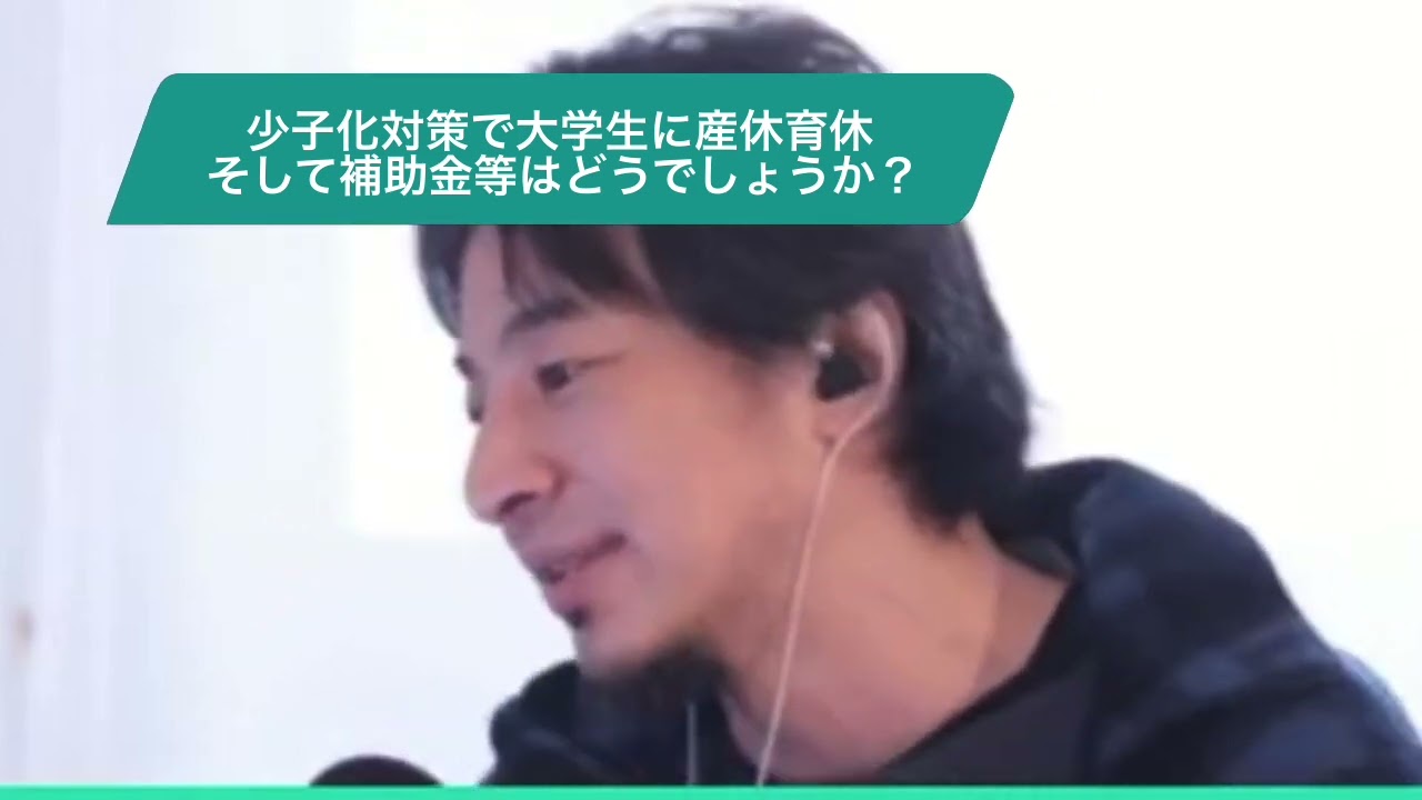 少子化対策で大学生に産休育休そして補助金等はどうでしょうか?産後は保育園に預けて復学、学費は免除だったりする方が、むやみやたらに大学生無償化するよりいいと思うのですが。その後の仕事でもキャリアを目指すこともできるし、企業側も産休入って休まれてしまう確率が減り、雇用しやすいのではないかなーと思います。