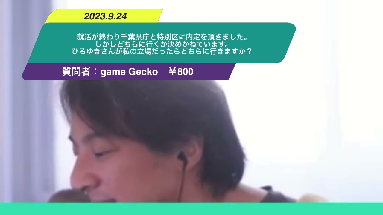 就活が終わり千葉県庁と特別区に内定を頂きました。しかしどちらに行くか決めかねています。千葉県庁はやりたいことができますが待遇があまり良くなく、特別区はやりたい仕事ではないですが待遇や職場環境がいいです。ひろゆきさんが私の立場だったらどちらに行きますか?