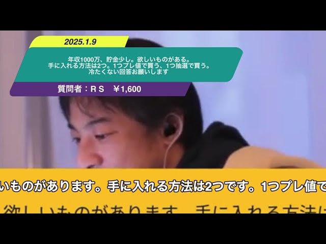 Kind: captionsLanguage: ja年収1000万貯金少しです欲しいものがあります手に入る方は2つです1つプレで買う100万円2つ抽選で買う1度の抽選確率は20%か当たっても買える確率は低いです抽選は店舗抽選のため1度受けるのにドアドアで3時間かかります抽選毎日やってますが仕事のお金なけです少のですがプレマネ購入は審議分かりません冷たくない回答お願いしますえプレーネで買えば以上ですいや抽選で買うは手に入らない可能性があるんですよでがやりたいことは手に入れるですなので手に入れるというのをやるこれは確定ですとでこれが安く手に入ったら得だよねっていうところで多分迷ってると思うんですけど安く手に入ったら得だよねに挑戦しようとすると手に入らない可能性がありますなのでプレーネで買う一択だと思いなさい