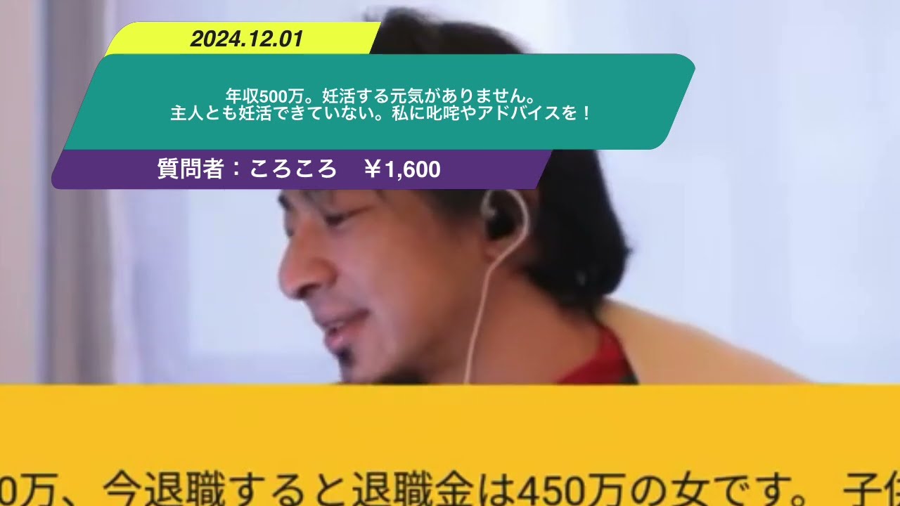 Kind: captionsLanguage: jaえ年収500万貯金400万今退職する退職金450万のです子供は惜しいですが仕事に気力体力を吸い取られ離活する現ありませんまた主人とも休みのさく妊活できてないですただ年々30仲間になってるのでストレスなく妊活するために退局するか現状通り仕事頑つ妊活頑反応しますどっちしか私に知ったえっと旦那さんと話してください僕じゃなくてまず子供が欲しいのかっていうの明確にしてくださいで絶対いらないよねっていう結論がお2人で出るんだったらもうほっといていいすただワンチャン欲しいよねって言うんだったらじゃあ月に1回そういう日を作りましょうでそれはじゃあ整理を調べて体温を調べて月に1回この期間というのは子供を育てあの作るためには必要だよねってんだったらじゃあその月に1日2日はそういうことに使いましょうっていうのを決めて月に1日2日だけ頑張るっっていう形でそこをちゃんと決めればいいのでなのでその旦那さんと一緒にそのどういう時間がすうかどういう人生みたいかのちょっと明確にした方がいいんじゃないかなと思いますはいなんかその妊活って別にあの毎週同行というよりあの配備があるのでそのハビに合わせてっていうのにした方がいいと思います