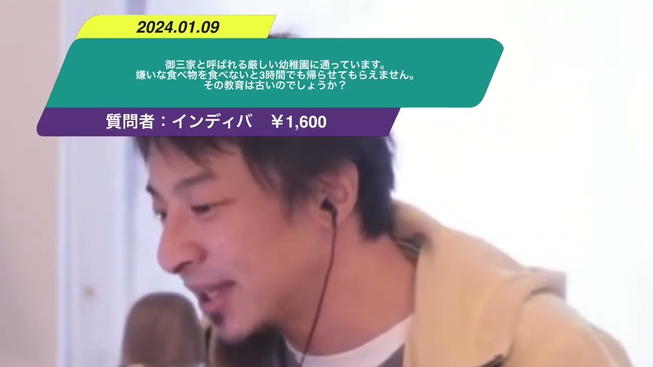Kind: captionsLanguage: ja御三家と呼ばれる厳しい幼稚園に通っています嫌いな食べ物を食べないと3時間でも帰らせてもらえませんその教育は古いのでしょうか時代関係なく必要な記憶ですかうんあの一般論でいくと必要ないという話になると思うんですけどあの誤算家の幼稚園に通ってるのであれば必要であるという答えになっちゃいますというのも要はそのえっと要はえっと何らかしらのその入る条件が厳しい幼稚園に入った場合っていうのは親も子供に対して色々な強制力を発揮することもできるし教育に時間とお金をかけるという覚悟があるんですよでその場合嫌いな食べ物を食べるってすごくどうでもいいことなんですけどルールというのには必ず従わなければならないでそのためにはルールを守らせるためには周りの親だったり幼稚園だったりという環境はそのために動いてくれる努力をするというのが分かってる子供っていうのはを原するし大人が言ったことを守るしっっていうので割とその社会の中でその従順で嫌われない子供になるんですよでそういう子供に育てたいと思って多分親はその御三家と呼ばれる幼稚園に通ってるのでなので僕はその親の需要としてはそれ正しいことだと思うんですよねただそれがその子供にとって幸せになるのかでその子供がじゃその起業とかをして成功するのかっていうとまた全然別ななんですよただある程度のその遺伝子を持っててあの親も金を持っててで従順な子供であれば会社員として大企業に入って一生食いっぱぐれないっていうラインは多分絶対うまくいくんですよなのでその要はあの最低社会の最低編にならずにそれなりの企業でそれなりに幸せになってほしいなっていうのであればそのルールに従順な子供を作るというのは僕は正解だと思うんですよねただまえっとそれが本当にその子にとっての幸せなのかとかなんかその大成功するのかって言わとそこは未数なのでそこはまた別のお話かなと思いますはい