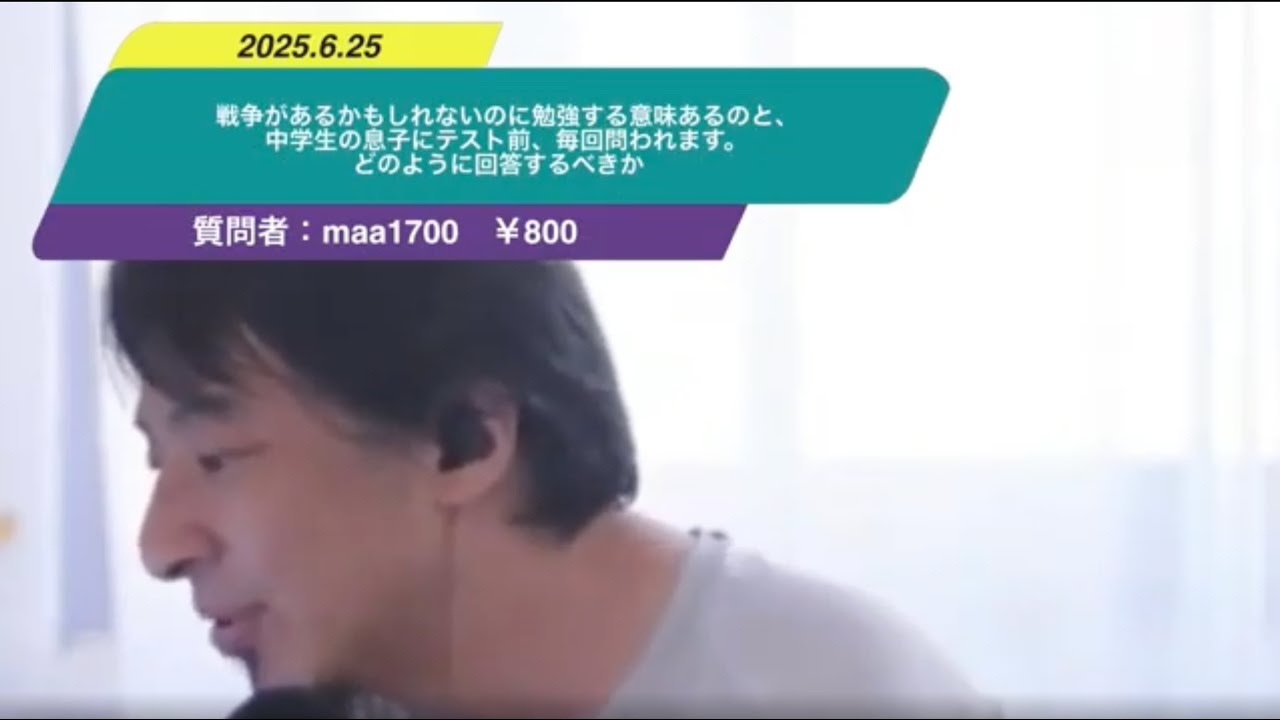 戦争があるかもしれないのに勉強する意味あるのと、中学生の息子にテスト前、毎回問われます。どのように回答するべきか