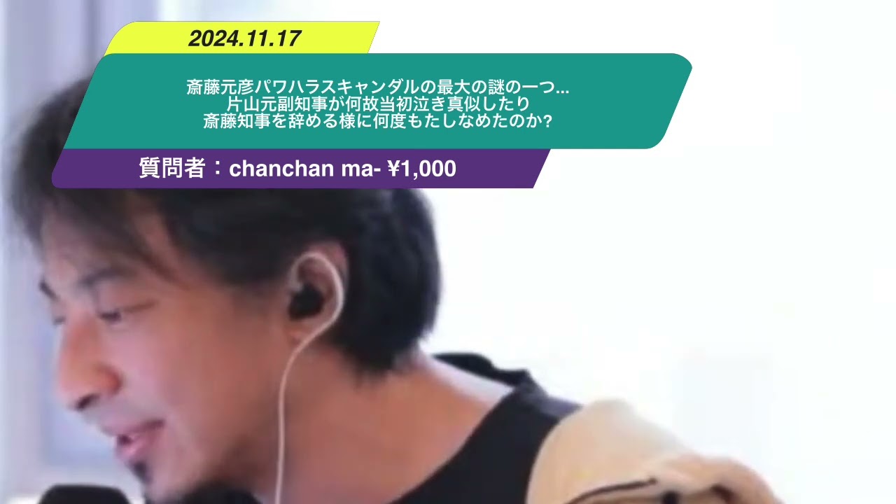 斎藤元彦パワハラスキャンダルの最大の謎の一つ… 片山元副知事が何故当初泣き真似したり斎藤知事を辞める様に何度もたしなめたのか… 正義我にありなら正々堂々と戦えば良かったのに…どう思われますか?