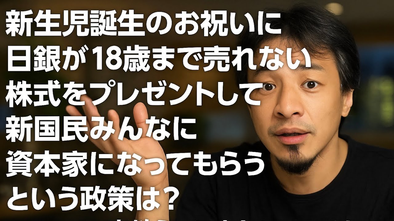 【ひろゆき】新生児誕生のお祝いに日銀が18歳まで売れない株式をプレゼントして新国民みんなに資本家になってもらうという政策は?ー ひろゆき切り抜き 20251008