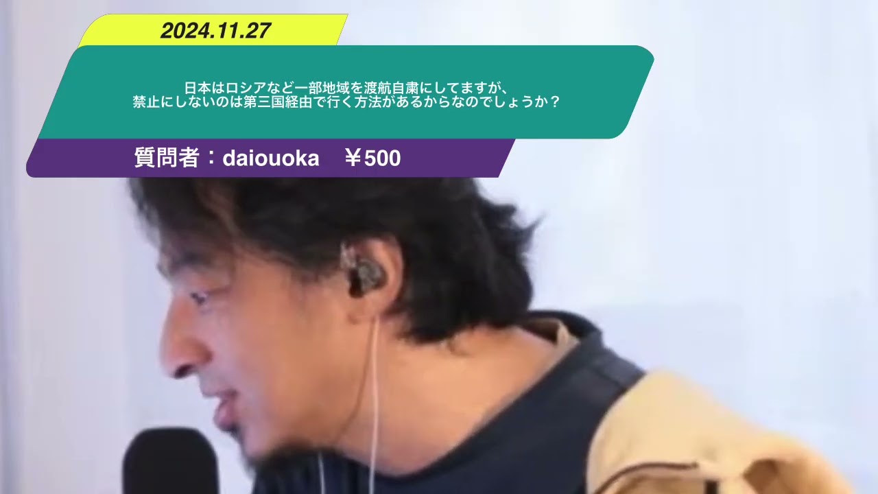 Kind: captionsLanguage: jaえのり君マイナXという方が中国経由でカラフトや渡航自主がされているくし駅YouTubeの撮影などをした後にくしとで所がないので捕まったとHTPなが報じました日本はロシアなの一部地域を特意識にしてますが禁止しないのは第最高経由で法があるかでしょうかえっと禁止というのが法律上できないからじゃないですかね