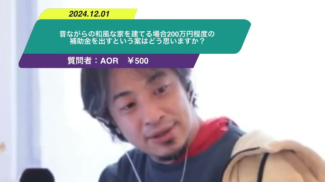 Kind: captionsLanguage: jaえ最近西洋風の家が増え和風な日本科学が減ってきてると思いますいろんな家があった方が面白いと思うので全然良いと思うんですがさすがに日本科学減りすぎだと思うので政府は文化保護の方にすんがいいと思いますそこで昔な内建てるば200万程度の条件出すてと思いますか多分200万だと作れないすねあの結局今木材ってめちゃくちゃ高くなっていてでその木材をちゃんと扱えるあの大職人さんも少ないんですよなのでそもそも論あのその金額の問題じゃなくて作れないっていう方が早いんじゃないかなと思うんですけどあの神社って燃えるともう作れないんですよね最近要するにその昔ながらのそのじゃあものすごいでかいあのなんか杉の丸田みたいなものがそもそものないよねって話もあるしで日本中でいろんなちっちゃんの修復をしなきゃいけないのでその金剛組とかその小西工芸者とかその宮大工系の人たって日本中ずっと修理し続けてるんですよで日本中修理し続けてるんですけど宮子はどんどん減っていてでもうすでに有名の頃直すだけ手一ぱいでそのなんかあんまり聞いたことがないマイナーなその北からかにあるすじちゃを直したいとか言われてもいやそんなとこに手回せないよってなっちゃうんですよなので基本的にはもうなかなかそのあの日本家国というのは直せないよねとがあってなのであののもその昔ながらの日本か国にの河原っていうその重くてでかい河原を乗せるっていうあの割とそのあの里山の風景というのあったんですけどただもう潰れちゃったところはもう戻せないんじゃないかなって言われてるのはその作れる人っていうその大工さん自体がもう少ないよねっていう話だった思いますなんでやるんだとするとま本当にそのあの200万とかじゃなくてあの補助金出しまくって大工を育てるっていう要はその大工さんの身分保証みたいな形にしないと無理なんじゃないかなと思うんですよねだあの農業の場合だと農業やってる人が絶対食いぱくれないようにいろんな保証とか補助金とかあったりするんですけどああいう感じでその宮大工になったらぱくれないよねっていう風にするぐらいしか多分なかなか難しいんじゃないかなと思いますはいそうだから川やきの職人さんもね減っているっていうねまその結局高く払えないしそれの技術を身につけてもしょうがないよねってことになってしまうっていう