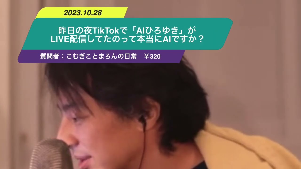 昨日の夜TikTokで「AIひろゆき」がLIVE配信してたのって本当にAIですか?