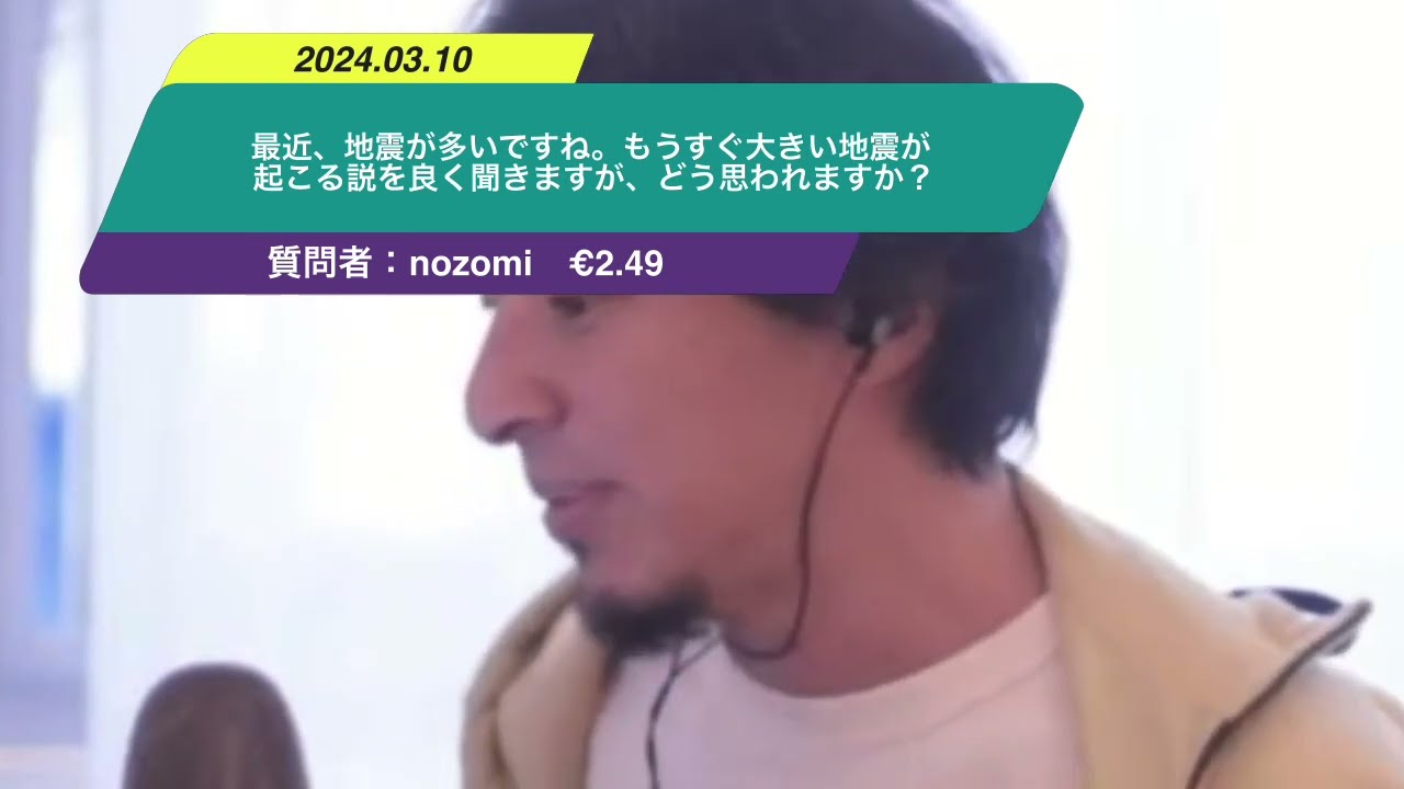 最近、地震が多いですね。もうすぐ大きい地震が起こる説を良く聞きますが、どう思われますか?