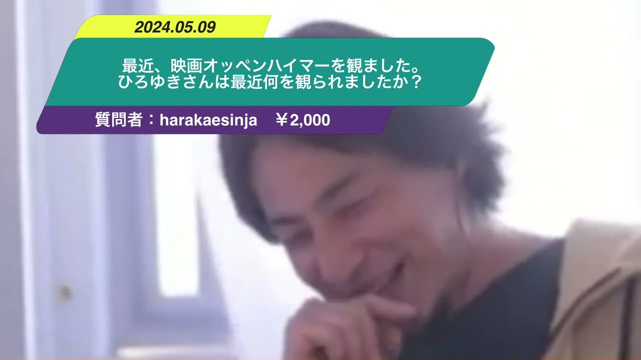 最近、映画オッペンハイマーを観ました。ひろゆきさんは最近何を観られましたか?