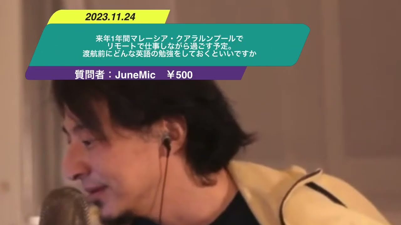 【ひろゆき】来年1年間マレーシア・クアラルンプールでリモートで仕事しながら過ごす予。渡航前にどんな英語の勉強をしておくといいですか?ー ひろゆき切り抜き 20231105