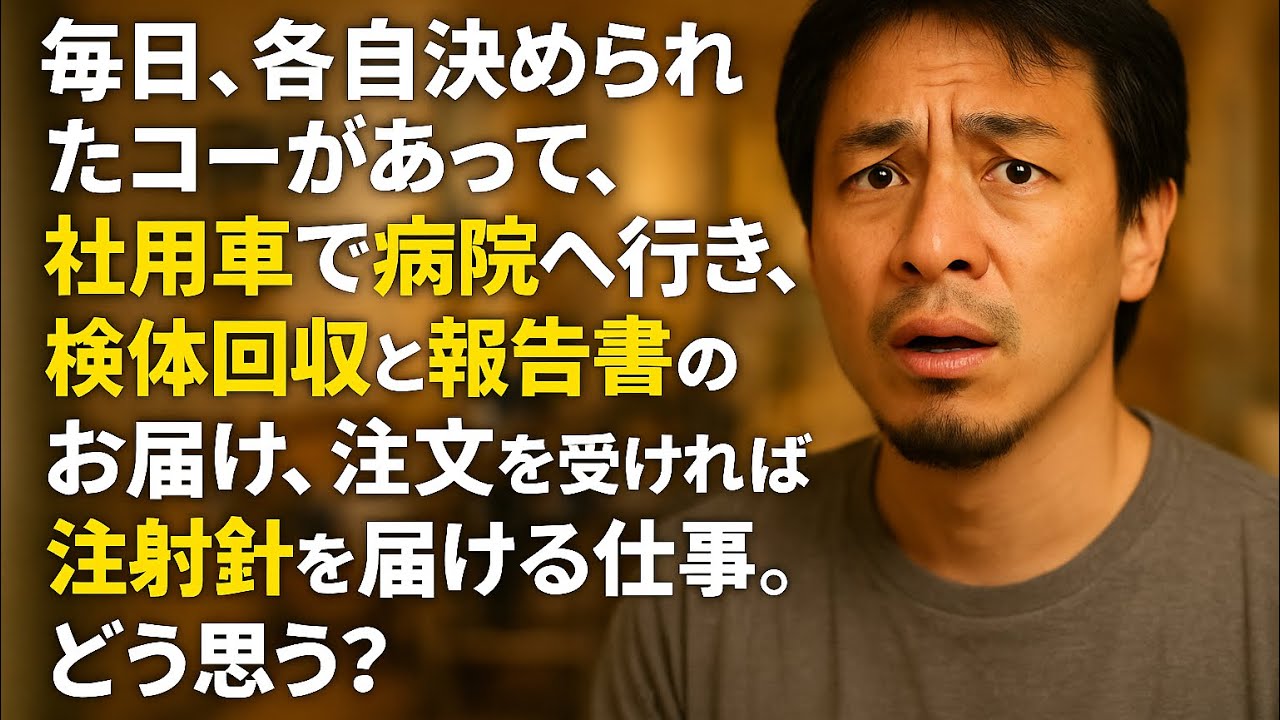 【ひろゆき】毎日、各自決められたコースがあって、社用車で病院へ行き、検体回収と報告書のお届け、注文を受ければ注射針を届ける仕事。どう思う?ー ひろゆき切り抜き 20250806