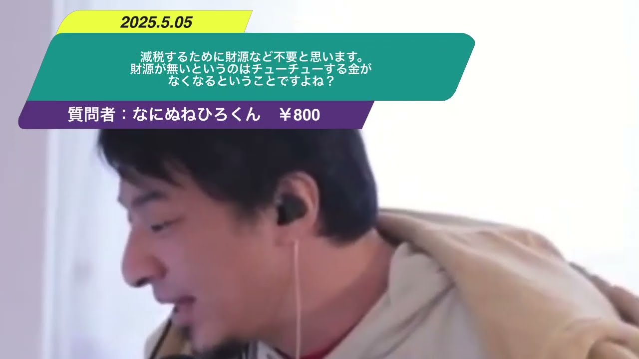 ひろゆきさんこんばんは。減税を主張すると「財源が無い」と反論がありますが違和感があります。減税するために財源など不要と思います。財源が無いというのはチューチューする金がなくなるということですよね?