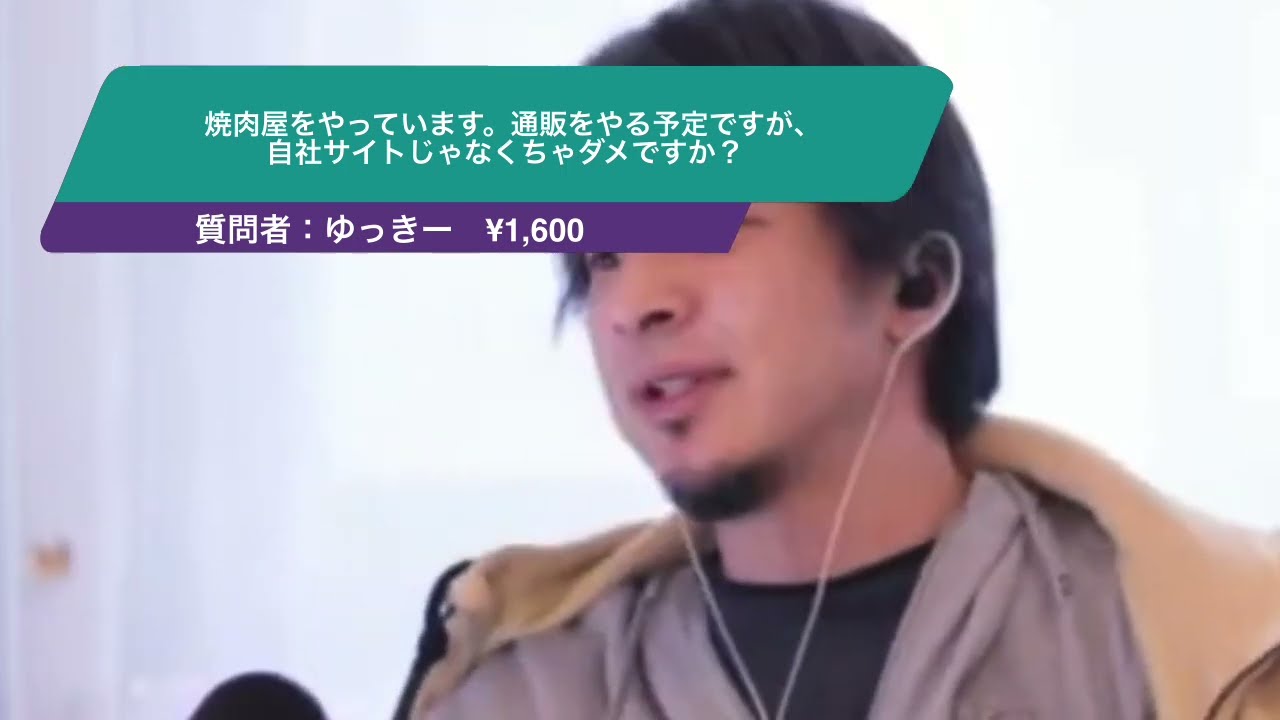 焼肉屋をやっていますが、新たに通販をやる予定です。ひろゆきさんの切り抜きで「楽天じゃなくて自社サイト作って売らなきゃだめ」と聞いたのですがPC詳しくないので最初は楽天だけでもいいですか?味付けするとすぐ色が変わってしまうので、タレ別真空パック冷凍で発送する予定です。