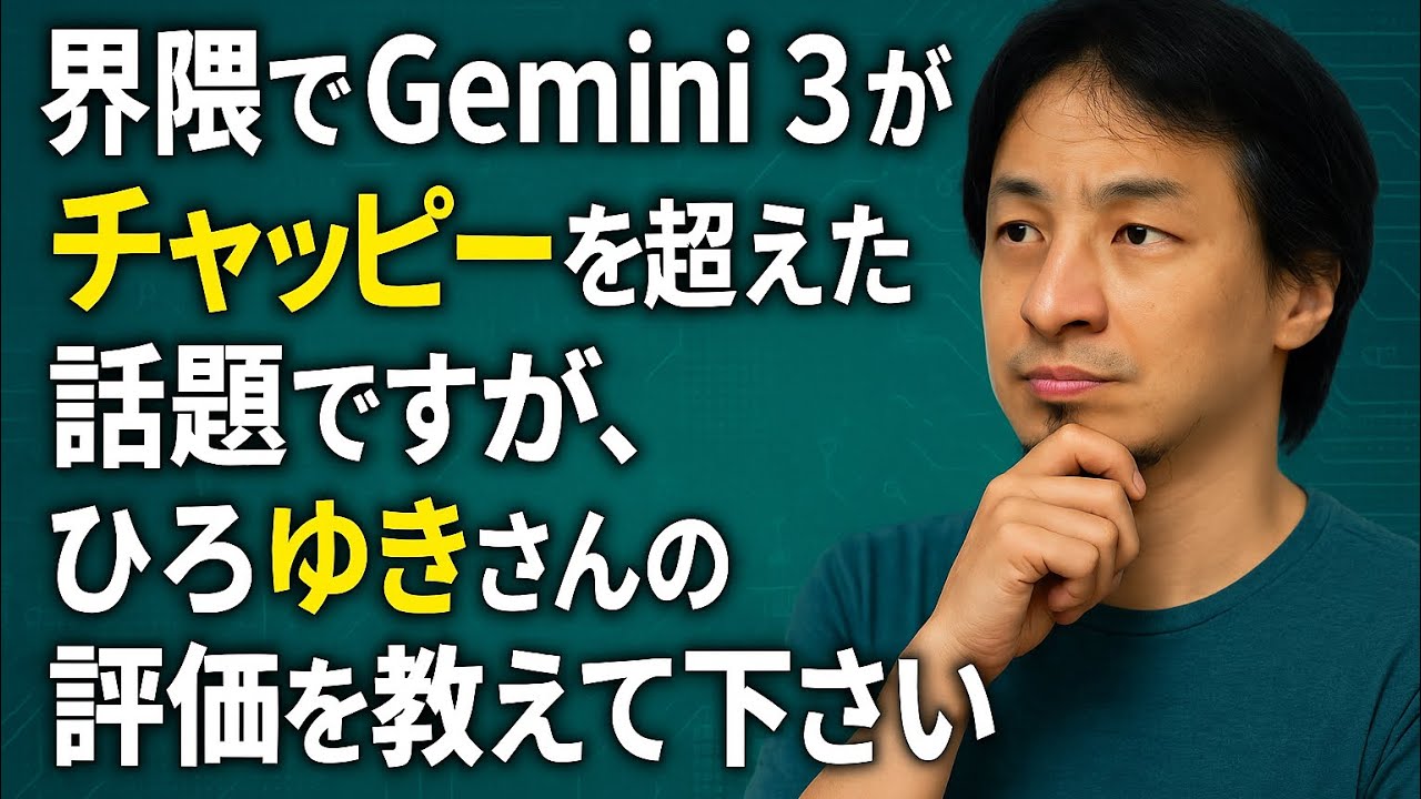 界隈でGemini3がチャッピーを超えたと話題ですが、ひろゆきさんの評価を教えて下さい