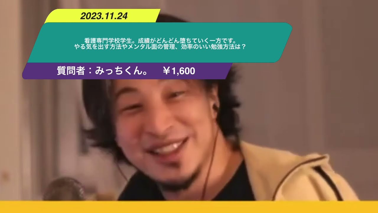 【ひろゆき】看護専門学校学生。成績がどんどん堕ちていく一方です。やる気を出す方法やメンタル面の管理、効率のいい勉強方法は?ー ひろゆき切り抜き 20231105