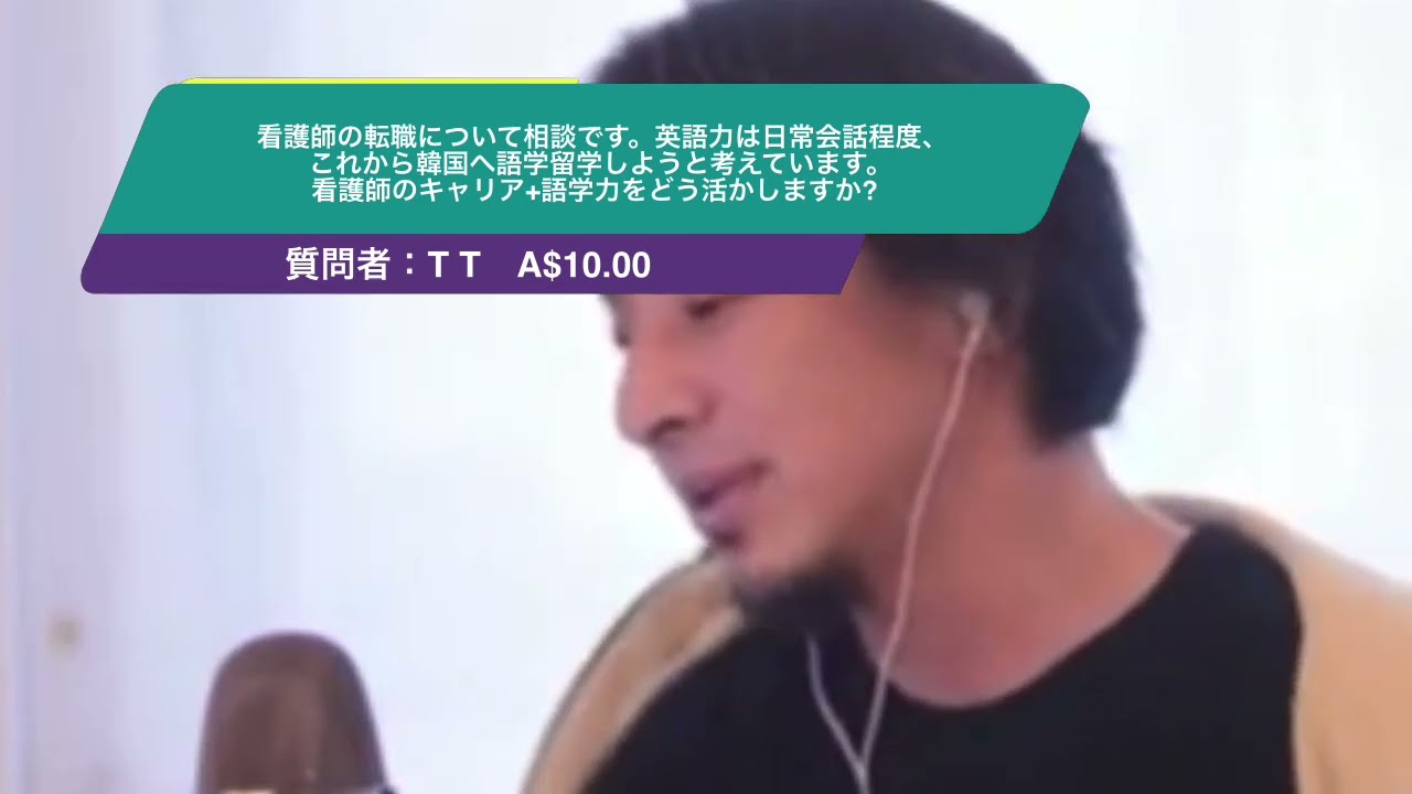 看護師の転職について相談です。英語力は日常会話程度、これから韓国へ語学留学しようと考えています。ひろゆきさんだったら、看護師のキャリア+語学力をどう活かしますか?