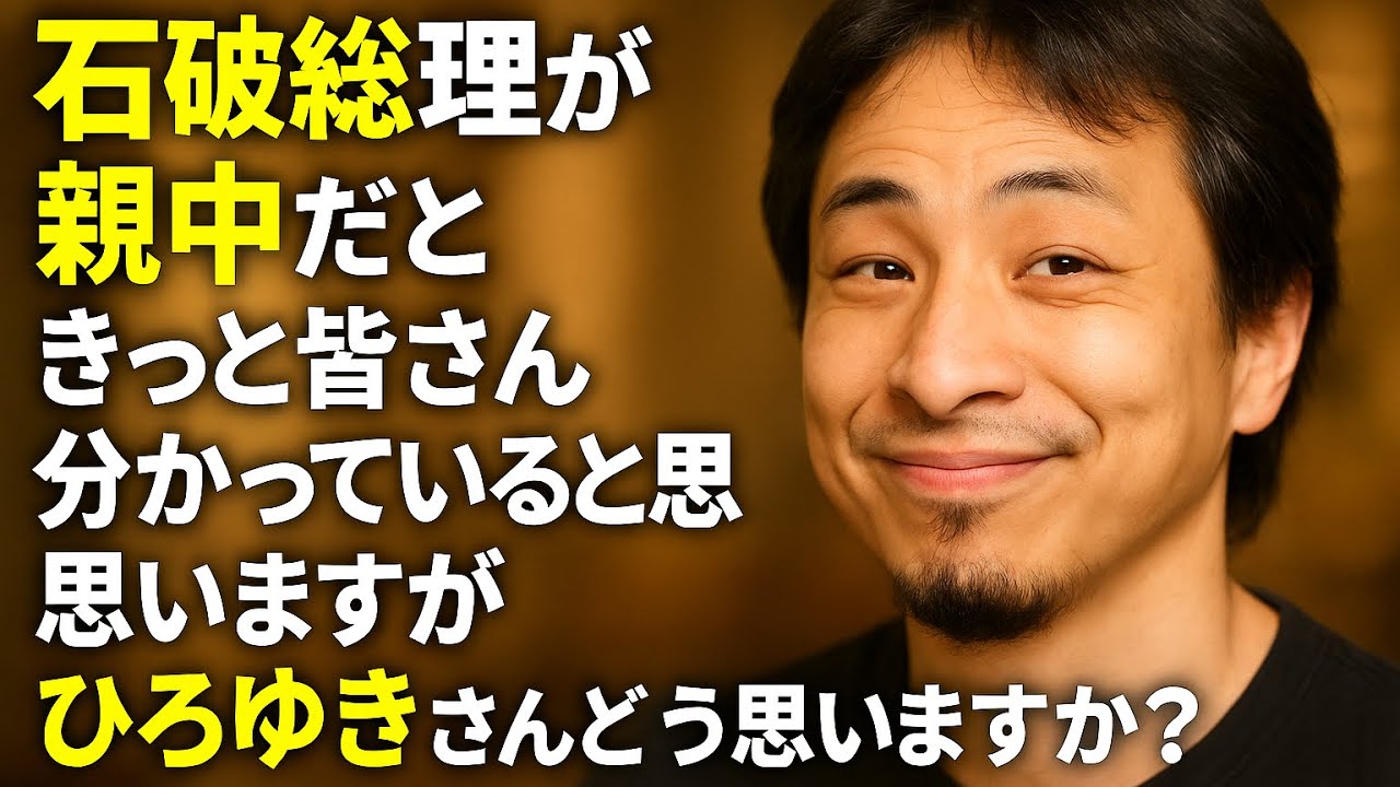 石破総理が親中だときっと皆さん分かっていると思いますがひろゆきさんどう思いますか?
