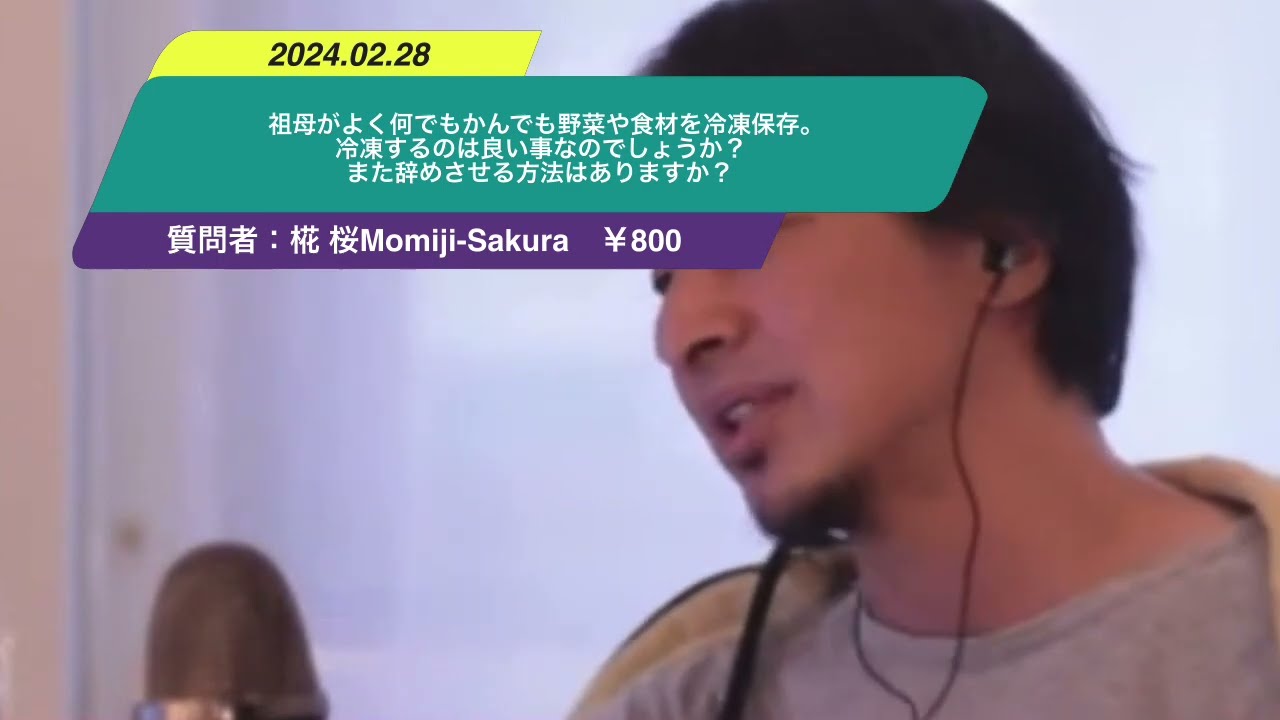 久しぶりにスパチャ失礼します。祖母がよく何でもかんでも野菜や食材を冷凍保存しています。そのせいで冷凍庫がパンパンで、理由を聞くと「N○Kで冷凍保存がいいとやっていたから」と言って辞めません。食材をなんでもかんでも冷凍するのは良い事なのでしょうか?また辞めさせる方法はありますか?