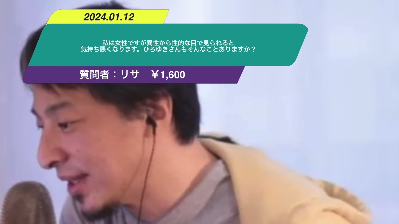 【ひろゆき】私は女性ですが異性から性的な目で見られると気持ち悪くなります。ひろゆきさんもそんなことありますか?ー ひろゆき切り抜き 20240112