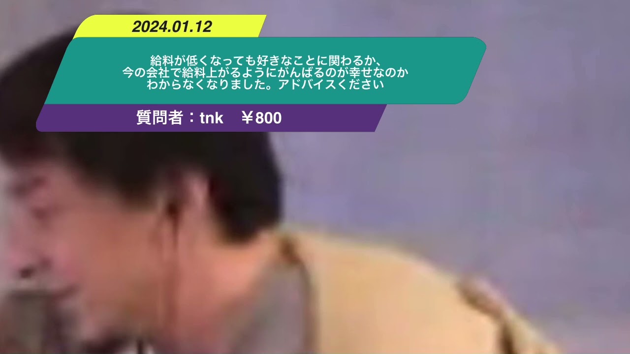 【ひろゆき】給料が低くなっても好きなことに関わるか、今の会社で給料上がるようにがんばるのが幸せなのかわからなくなりました。アドバイスくださいー ひろゆき切り抜き 20240112