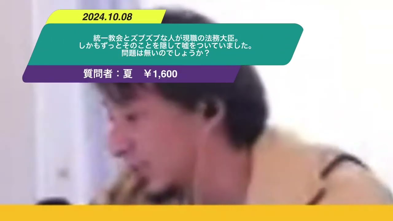 Kind: captionsLanguage: jaえ統一協会とズブズブな人が原職のホームラジやってますしかもずっとその隠し嘘ました問題ないでしょうかいや多分あの選挙終わった後にホム大臣変わるんじゃないですかなのであの論交渉で大臣にしたというだけなんじゃないかなという風に僕は思ってますけども