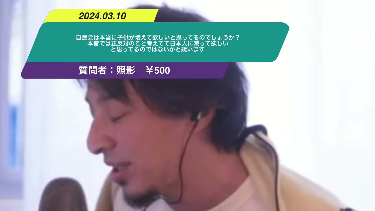 Kind: captionsLanguage: jaえ自民党は本当に子が増えてほしいと思ってるのでしょうか思ってません本では正反対のことを考えていて日本人に減ってほしいと思ってるのだかえっと日本人に減ってほしいと思ってるわけではなくて少子対策をどうでもいいと思ってるのであの何もしてないから下がってるっていうだけですなので別にあの減らしたいとまで思ってる人はそんなに多くないんじゃないかなと思います