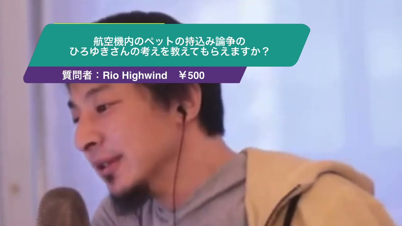航空機内のペットの持込み論争のひろゆきさんの考えを教えてもらえますか?
