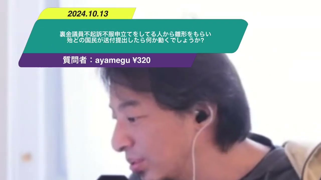 Kind: captionsLanguage: jaえ裏金議員不帰則港を申し立ってる人から日型をもらいほとんどの国民が送付提出したら何か動くでしょうかえっと一応検察の審議会には回ってるはずなんですけど検察審議会ってあの結論を出さないようにしてそのその政府の都合のいいところになるまでGoogle審議会をあの開催し続けるっていう裏技があったりするのでなので実質的には多分何も起きないと思うのでなので裏金議員を選挙で当選させないという国民があの他の人に投票するというのをすればいいんじゃないかなとますえ先日シで担当行動中に警察間30人ぐらいに絡まれうわ共したとあのしたらちょっと笑てて面白かったですなんで30人に囲まれたんすかそっちの方が気になりますけど
