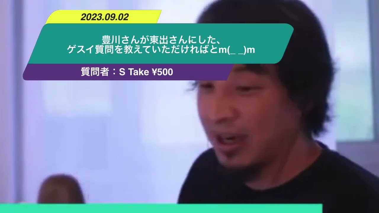 【ひろゆき】豊川さんが東出さんにした、ゲスイ質問を教えていただければとm(_ _)mー ひろゆき切り抜き 20230902