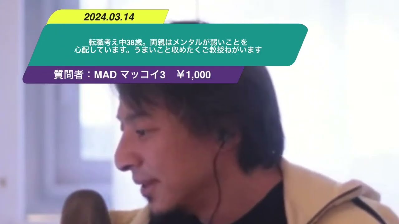 【ひろゆき】転職考え中38歳。両親はメンタルが弱いことを心配しています。うまいこと収めたくご教授ねがいますー ひろゆき切り抜き 20240314