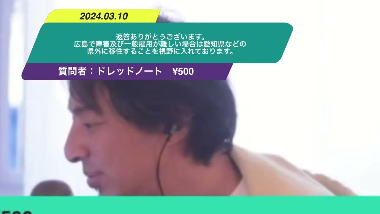 ひろゆきさん、先ほどのご返答ありがとうございます。ひろゆきさんの言った通り自信の事は自分で決めて勇往邁進していきたいと思います。もしも広島で障害及び一般雇用が難しい場合は愛知県などの県外に移住することを視野に入れております。ちなみに年齢は今年で29です。