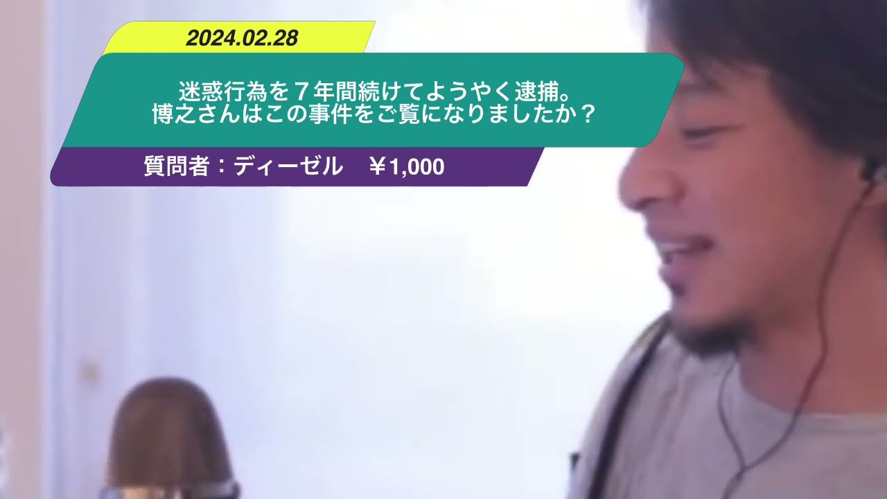 【ひろゆき】迷惑行為を7年間続けてようやく逮捕。博之さんはこの事件をご覧になりましたか?ー ひろゆき切り抜き 20240228