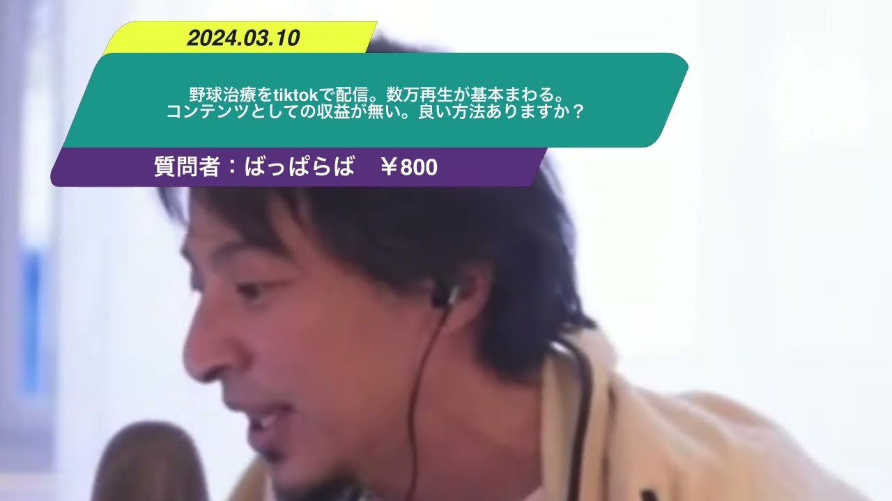 野球治療をtiktokで配信。アベで数万再生が基本まわる。tiktokでは店舗集客にはなるがコンテンツとしての収益が無く、そこもあると良いなと思いますが方法が思いつきません。ご教示いただけると嬉しいです。