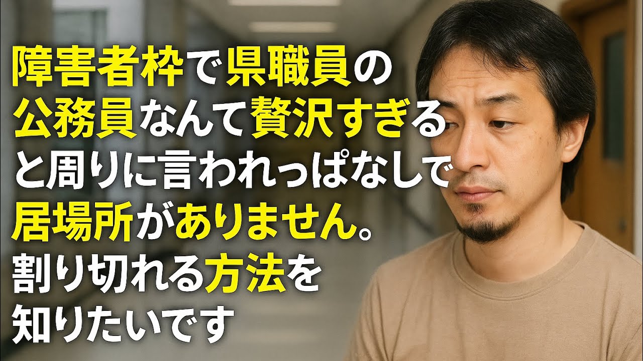 【ひろゆき】障害者枠で県職員の公務員なんて贅沢すぎると周りに言われっぱなしで居場所がありません。割り切れる方法を知りたいですー ひろゆき切り抜き 20250804