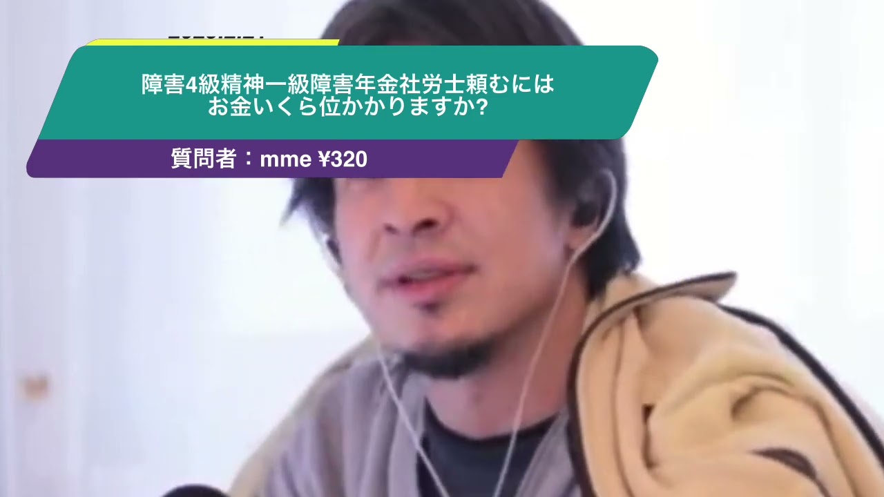 障害4級精神一級障害年金社労士頼むにはお金いくら位かかりますか? ひろゆきサン教えて下さい。