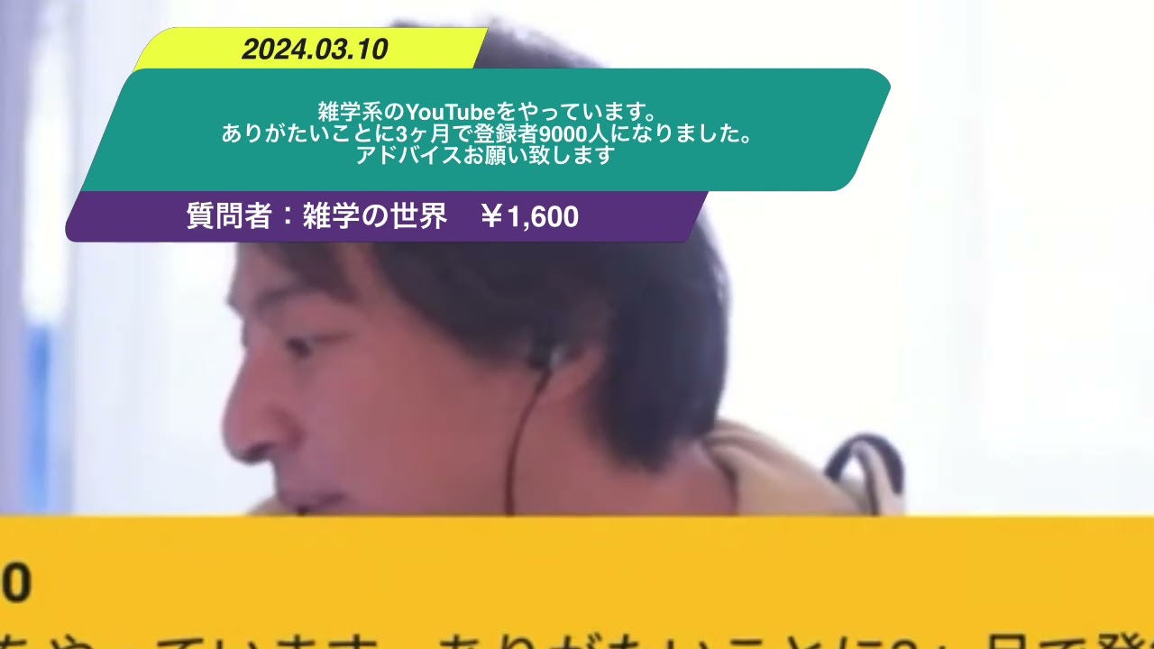 【ひろゆき】雑学系のYouTubeをやっています。ありがたいことに3ヶ月で登録者9000人になりました。アドバイスお願い致します。ー ひろゆき切り抜き 20240310
